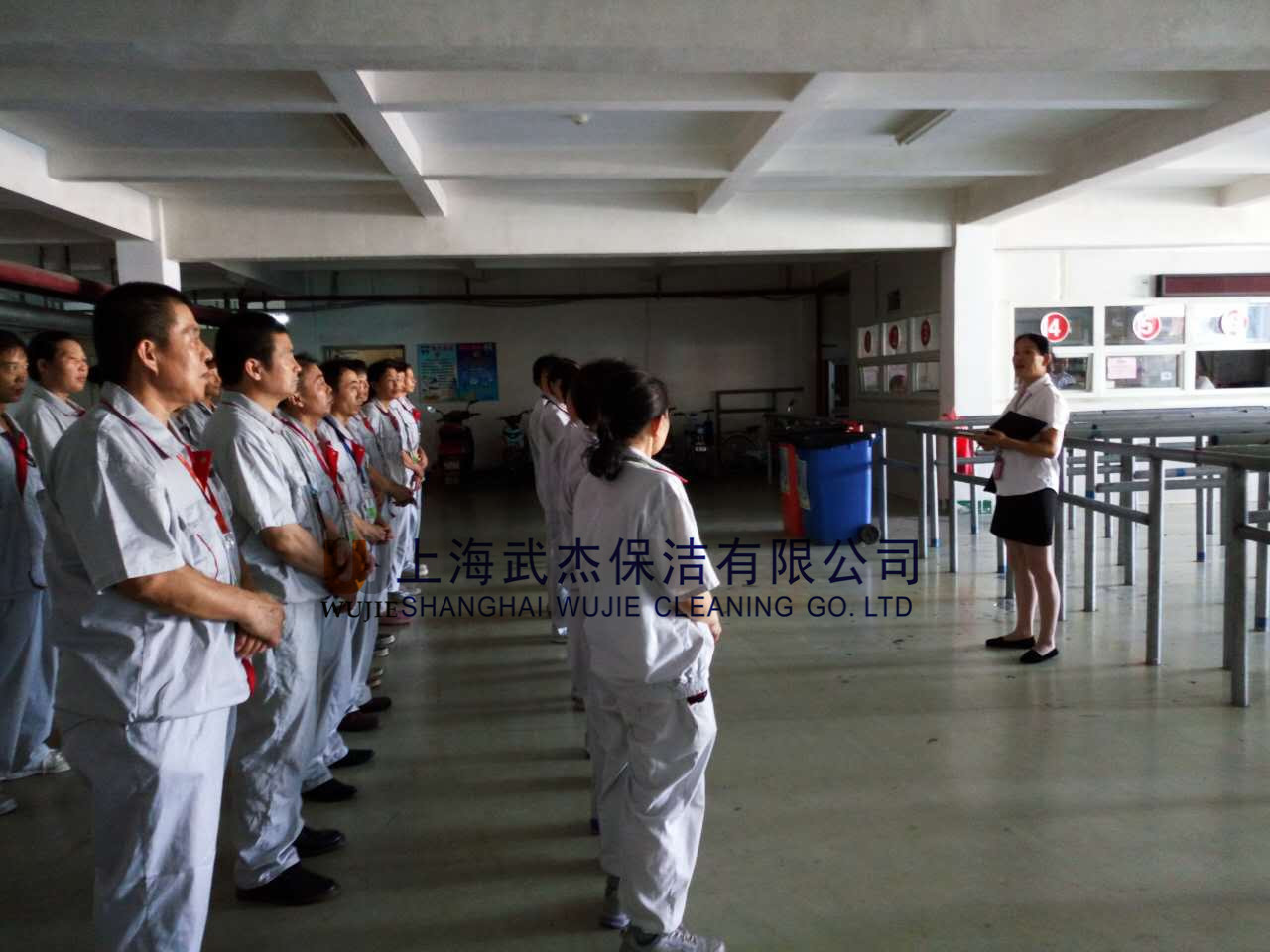 1. 進(jìn)入場地:保潔員由公司主管統(tǒng)一劃分安排工作區(qū)域,穿好工裝,配領(lǐng)工具后進(jìn)入保潔場所實(shí)施保潔。
